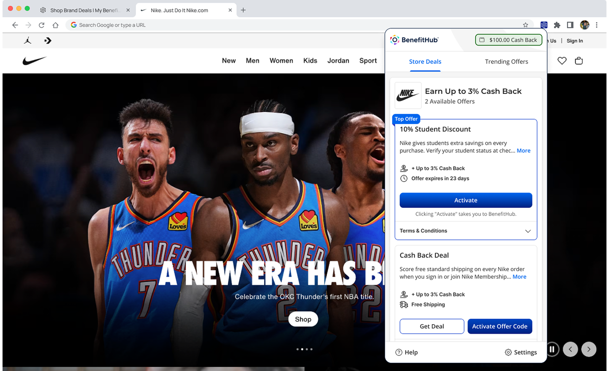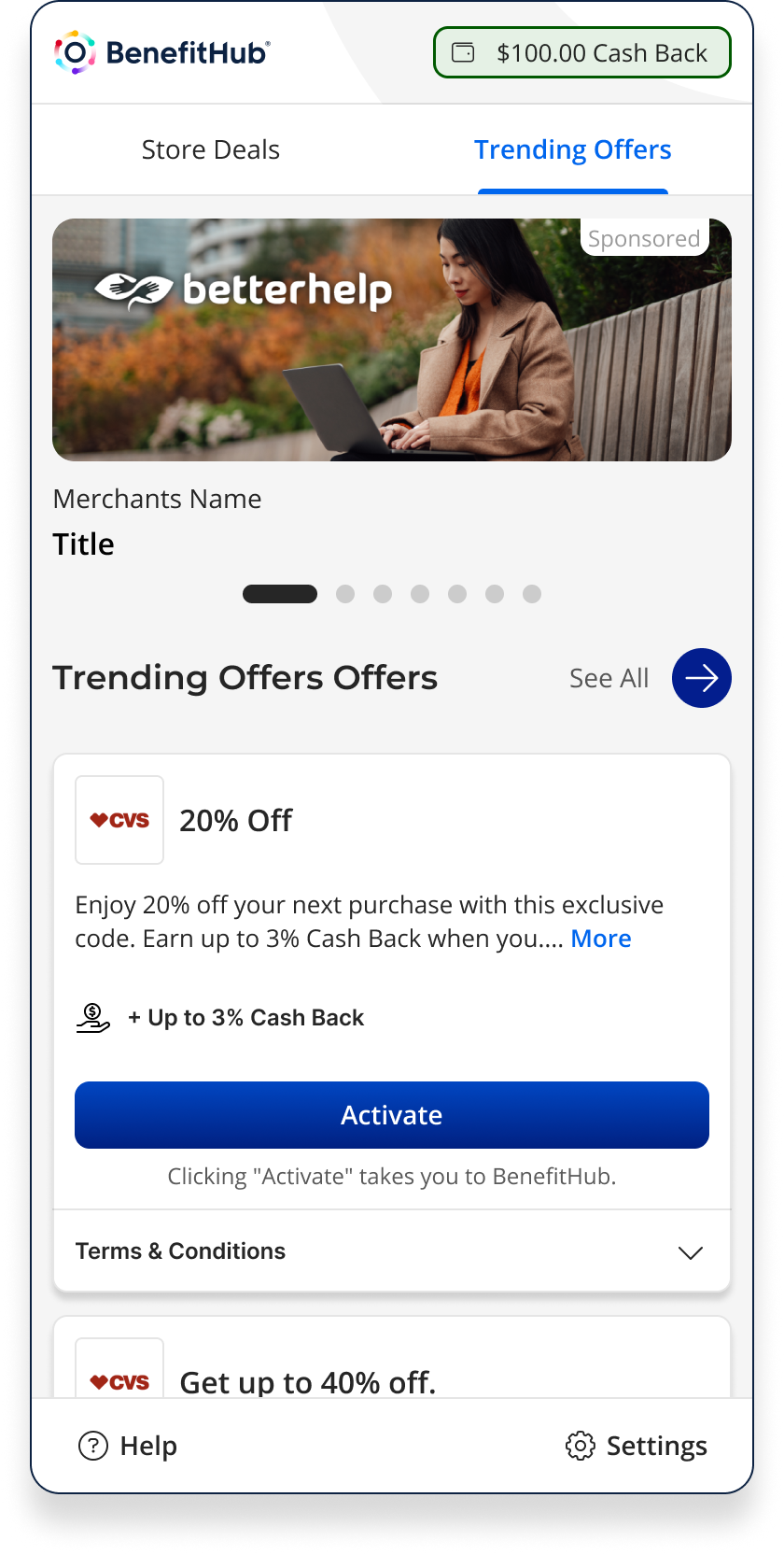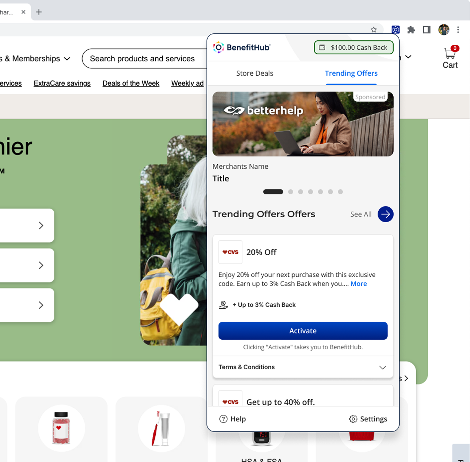Shoppers frequently miss out on potential savings because finding, activating, and applying deals is fragmented and often forgotten at checkout. Competing solutions like Honey and Rakuten had set a high bar for user expectations. BenefitHub needed an extension that could compete with those standards while maintaining its brand identity. The challenge was to surface relevant deals without interrupting the shopping flow, build trust through clear activation states, and provide gentle reminders through checkout. All while working consistently across multiple browsers.