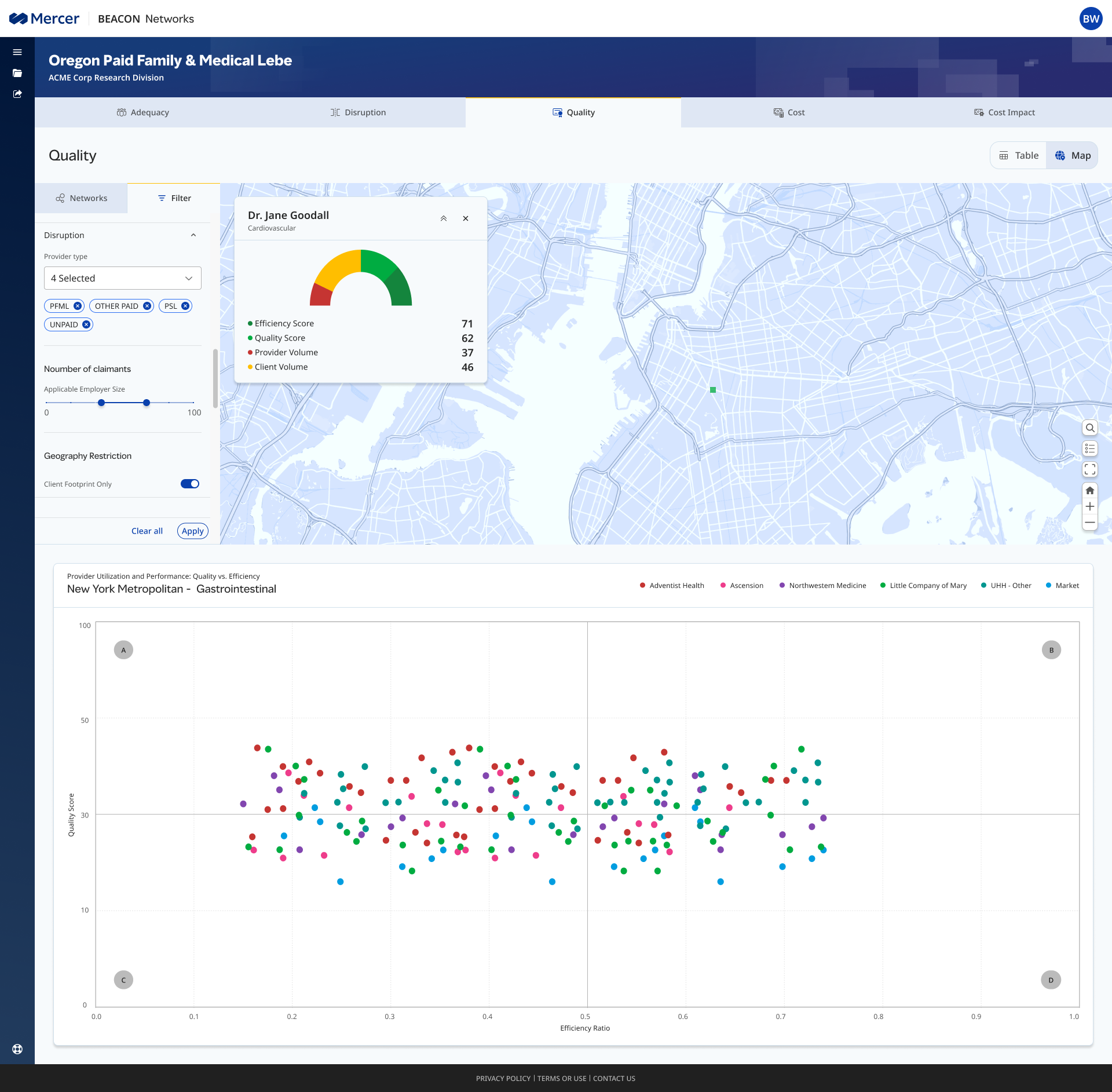 Mercer consultants were juggling three tools to answer a single question: how good is this network? QualPic handled quality data. NetPic covered discounts. Beacon Value tracked access and disruption. None of them talked to each other.